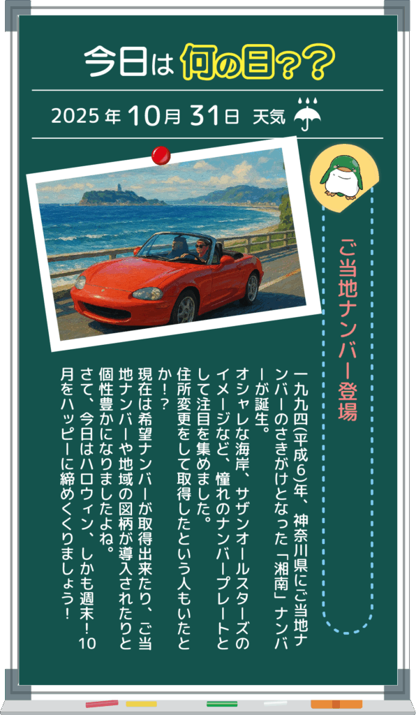 2025.10.31 デルタブログ ご当地ナンバー登場 < 前へ 一覧へ戻る カテゴリ ・すべて ・お知らせ ・デルタブログ アーカイブ ・ 2025.10(23)・ 2025.09(20)・ 2025.08(16)・ 2025.07(24)・ 2025.06(21)・ 2025.05(20)・ 2025.04(22)・ 2025.03(20)・ 2025.02(19)・ 2025.01(19)・ 2024.12(22)・ 2024.11(6)