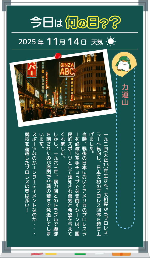 2025.11.14 デルタブログ 力道山 < 前へ 一覧へ戻る カテゴリ ・すべて ・お知らせ ・デルタブログ アーカイブ ・ 2025.11(8)・ 2025.10(23)・ 2025.09(20)・ 2025.08(16)・ 2025.07(24)・ 2025.06(21)・ 2025.05(20)・ 2025.04(22)・ 2025.03(20)・ 2025.02(19)・ 2025.01(19)・ 2024.12(22)・ 2024.11(6)