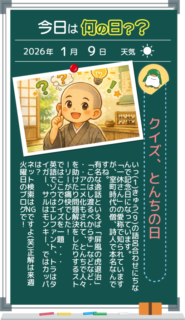 2026.01.09 デルタブログ クイズ、とんちの日 < 前へ 一覧へ戻る カテゴリ ・すべて ・お知らせ ・デルタブログ アーカイブ ・ 2026.01(6)・ 2025.12(22)・ 2025.11(17)・ 2025.10(23)・ 2025.09(20)・ 2025.08(16)・ 2025.07(24)・ 2025.06(21)・ 2025.05(20)・ 2025.04(22)・ 2025.03(20)・ 2025.02(19)・ 2025.01(19)・ 2024.12(22)・ 2024.11(6)