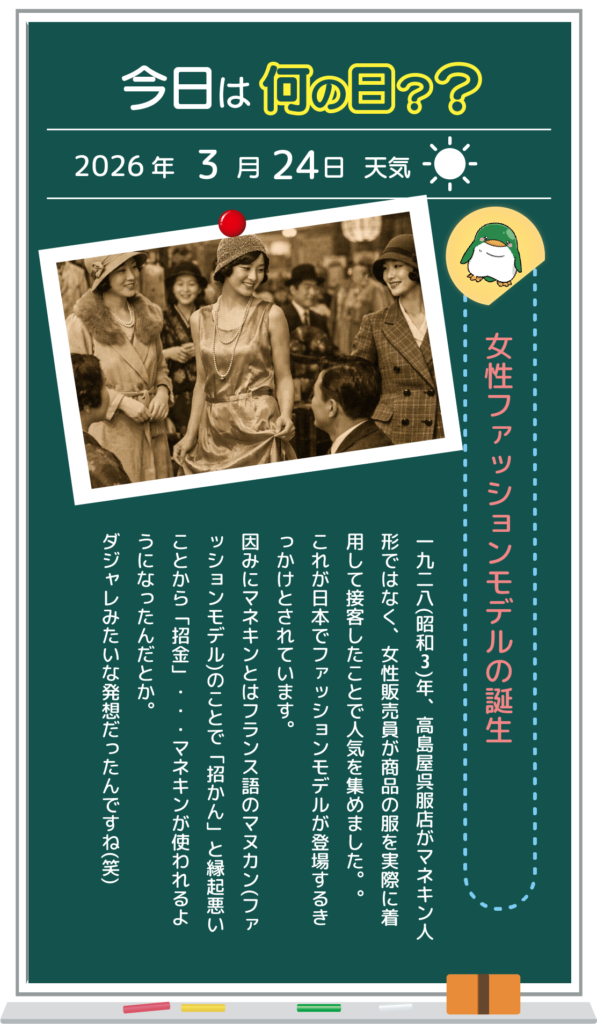 2026.03.24 デルタブログ 女性ファッションモデルの誕生 < 前へ 一覧へ戻る カテゴリ ・すべて ・お知らせ ・デルタブログ アーカイブ ・ 2026.03(16)・ 2026.02(18)・ 2026.01(20)・ 2025.12(22)・ 2025.11(17)・ 2025.10(23)・ 2025.09(20)・ 2025.08(16)・ 2025.07(24)・ 2025.06(21)・ 2025.05(20)・ 2025.04(22)・ 2025.03(20)・ 2025.02(19)・ 2025.01(19)・ 2024.12(22)・ 2024.11(6)