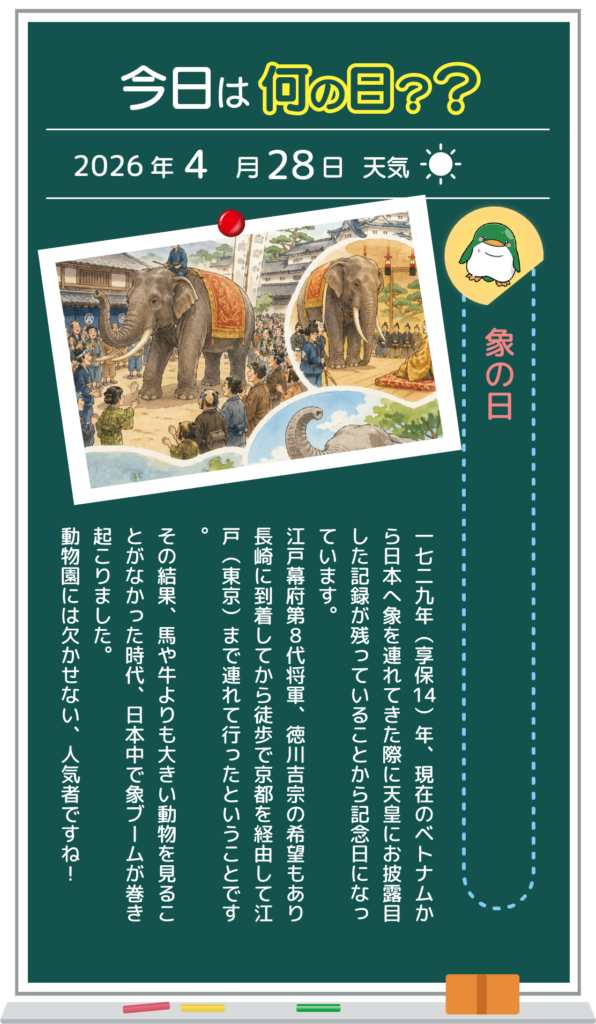 2026.04.28 デルタブログ 象の日 < 前へ 一覧へ戻る カテゴリ ・すべて ・お知らせ ・デルタブログ アーカイブ ・ 2026.04(20)・ 2026.03(21)・ 2026.02(18)・ 2026.01(20)・ 2025.12(22)・ 2025.11(17)・ 2025.10(23)・ 2025.09(20)・ 2025.08(16)・ 2025.07(24)・ 2025.06(21)・ 2025.05(20)・ 2025.04(22)・ 2025.03(20)・ 2025.02(19)・ 2025.01(19)・ 2024.12(22)・ 2024.11(6)